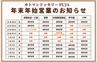 ※PUJA松坂屋高槻店は通常営業、PUJA宝塚は20時まで営業いたします。