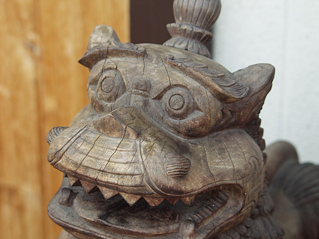 日本の狛犬(こまいぬ)のような置物ですが、写真はPUJA高槻の入り口で皆様をお出迎えしている愛嬌?たっぷりの置物です。