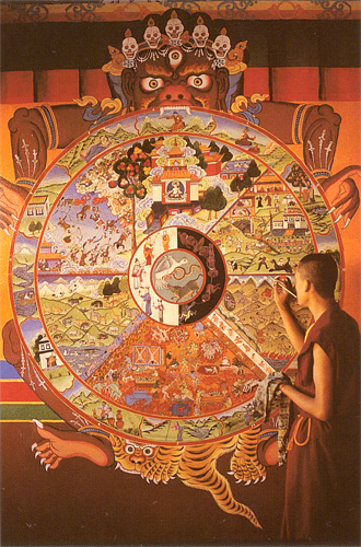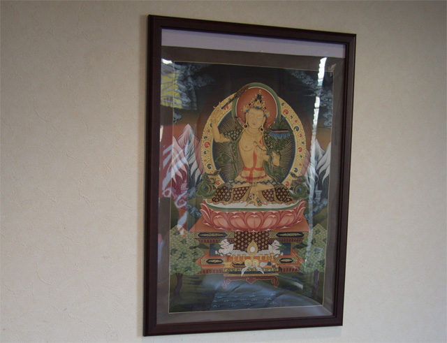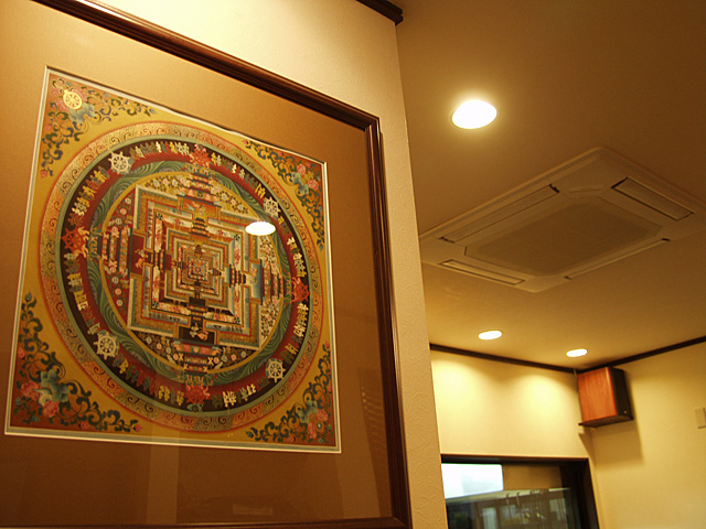 色とりどりに繊細に筆先で宗教の世界を書いたものをネパールでは「タンカ」といいます。 一般に曼荼羅といわれているものもこのひとつです。 こちらはPUJA宝塚にて展示しています。